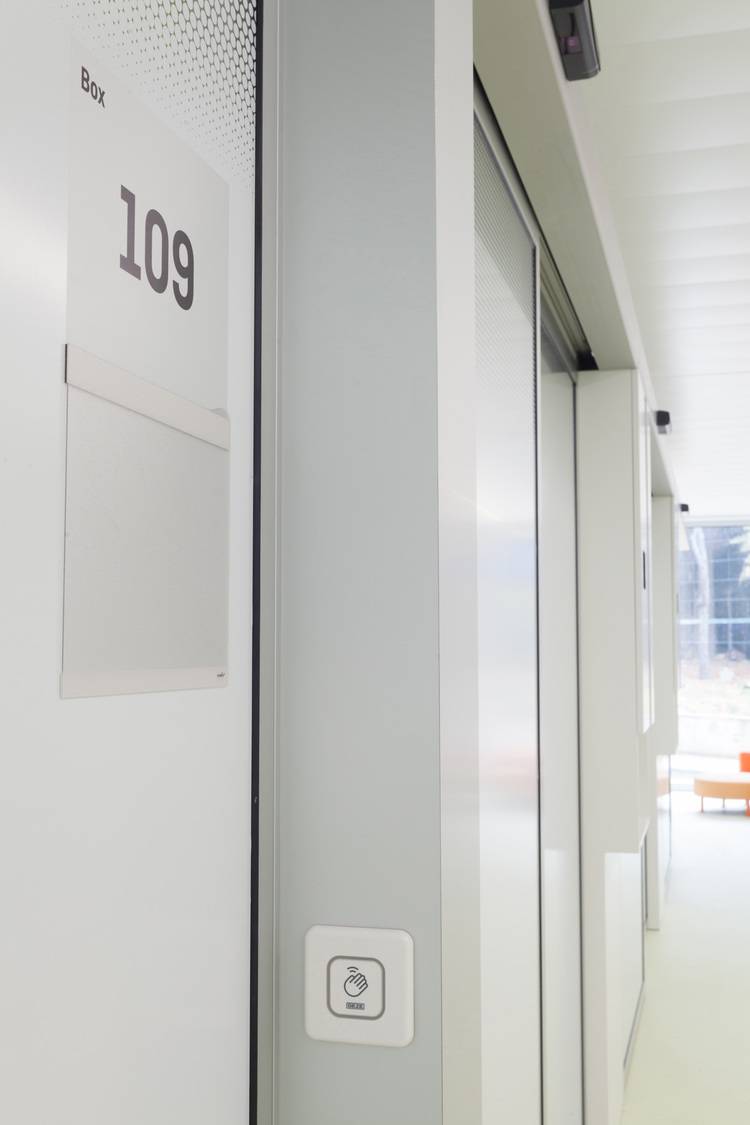In den Bereichen mit höchsten hygienischen Anforderungen – wie OP-Zonen oder Stationen für immungeschwächte Patienten – wurde das automatische Schiebetürsystem Powerdrive PL-HT eingesetzt. Es ermöglicht die hermetische Abdichtung der Türflügel durch Absenken und Anpressen an die Zarge. Ein umlaufendes Dichtungssystem reduziert die Luftdurchlässigkeit und erfüllt erhöhte Anforderungen an Hygiene und Luftführung.