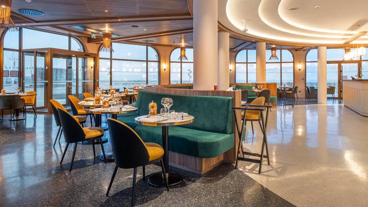 Der direkte Zugang zum Hotel-Restaurant L’Opale von der Strandpromenade aus erfolgt durch eine Kombination aus Drehtüren und automatischen Schiebetüren. Die mit versenkten Geze Boxer Türschließern ausgestatteten außenliegenden Türen passen sich auch optisch nahtlos in das Design der Fassade ein. Der Stoppmechanismus garantiert, dass sich die Türen nur während der Öffnungszeiten des Restaurants öffnen, um Gäste von außerhalb einzulassen. Den innenliegenden Abschluss der Schleuse bildet die einflügelige automatische Schiebetür Slimdrive SL NT, die mit ihrer Öffnungsweite für Innen- und Außentüren mit hoher Begehfrequenz geeignet ist.