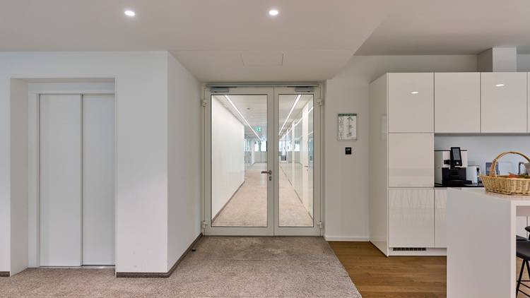Aufwärts rankende und nach unten hängende Pflanzen aller Art verdecken schon jetzt die eigentliche Architektur zu weiten Teilen. Und damit auch die fast vollständig verglasten Geschosse des Bürogebäudes. So kann es durchaus zu reduziertem Lichteinfall kommen. Umso wichtiger ist es also, dass das einfallende Tageslicht maximal genutzt wird. Um es möglichst weit ins Gebäude vordringen zu lassen, entschieden sich die Architekten für voll verglaste Hörmann-Rohrrahmenobjekttüren aus Aluminium. Das sorgt für eine offene und transparente Innenarchitektur.