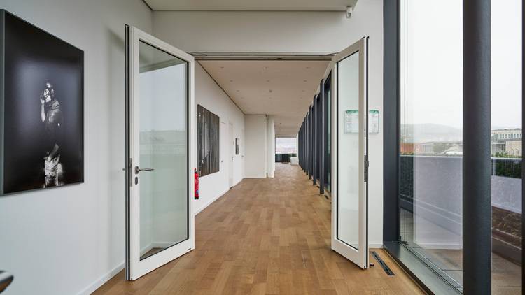 Rein funktional sorgen die Türen mit unterschiedlichen Feuerwiderstandsklassen von feuerhemmend T30 bis feuerbeständig T90 für den Brandschutz in den einzelnen Gebäudeabschnitten. Dort, wo kein Licht hingelangt und Sichtbeziehungen auch nicht mehr wichtig sind, wurden Brandschutztüren aus Stahl von Hörmann verbaut: im Keller.