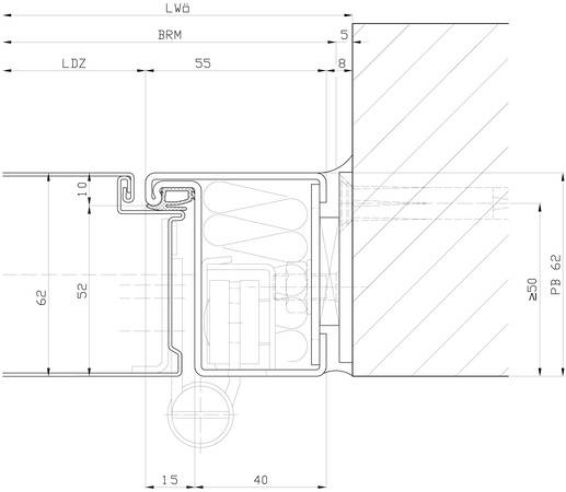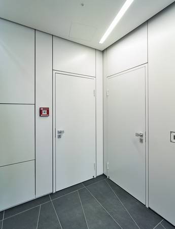 Als architektonisch hochwertige Türlösung im Objektbau, mit beidseitiger Flächenbündigkeit von Türblatt und Zarge, bietet sich die Kombination einer Hörmann DryTec Blockzarge 62/55 bzw. 62/75 (Bautiefe 62mm, Zargenspiegel Bandgegenseite 55mm bzw. 75mm) mit stumpfeinschlagenden Stahlblechtüren STS an. Sie ermöglichen eine beidseitige Flächenbündigkeit von Türblatt und Zarge. Möglich ist das durch die Konstruktion: Sowohl die Bautiefe der Zarge als auch das Türblatt sind 62mm stark.
