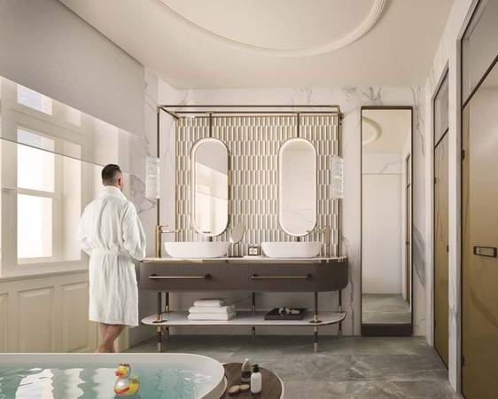 „Der Sugar Palace ist eines der spannendsten und herausforderndsten Hotelprojekte der UBM Development. Mit der Beauftragung der Fa. Artweger für die Lieferung der Dusch- und WC-Abtrennungen setzen wir eine langjährige und erfolgreiche Zusammenarbeit fort. Einmal mehr kann das Unternehmen aus Bad Ischl seine Kompetenz im Hinblick auf technische Lösungen und sein Know-how bei Glasbeschichtungen unter Beweis stellen. Was hier geliefert wird, ist nichts von der Stange - pulverbeschichtete Profile im Bronzeton, bedruckte Gläser sowie Sonderlösungen bei Griffen und Beschlägen. Gemeinsam freuen wir uns auf die Eröffnung dieses Meilensteins in unserem Hotelportfolio.“ beschreibt der UBM Projektleiter D. I. Roman Ehrentraut die Eckpunkte der Zusammenarbeit.