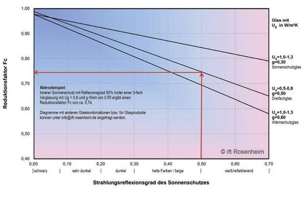 Da in modernen Bürogebäuden in der Regel Lüftung und Sonnenschutz vorhanden sind, bzw. durch die Anwendung der DIN EN 1946 Lüftungskonzepte geplant werden müssen, bietet sich hier der Ansatz, den innen liegenden Sonnenschutz in Form eines Abluftsystems zu verknüpfen. Der innen liegende Sonnenschutz erfährt so eine mögliche Halbierung des gtot-Wertes, und wird damit annähernd so effektiv wie der außen liegende Sonnenschutz. Diese Möglichkeiten erschließen sich in der Regel ohne größere zusätzliche Materialkosten.