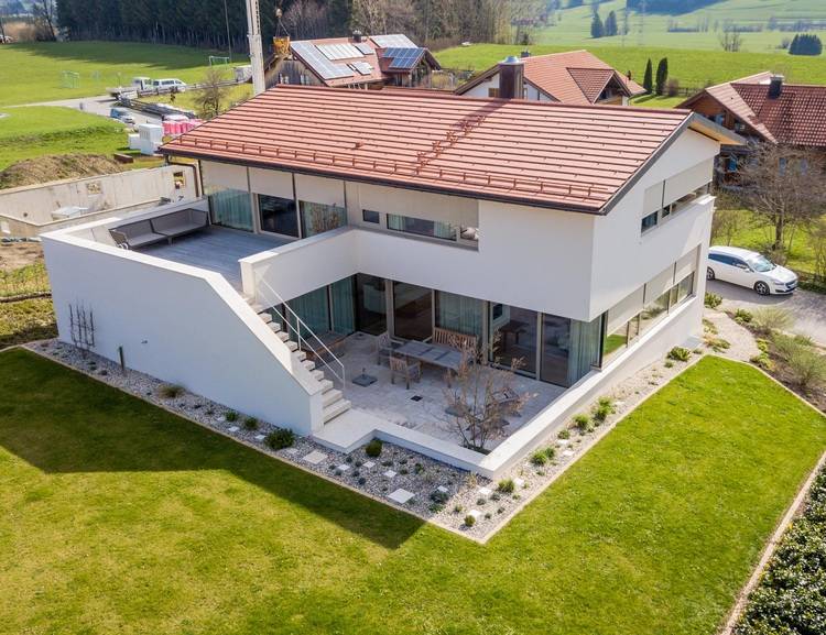 Ein Top-Sonnenschutz, ein Plus an Energieeffizienz und all das an einer außergewöhnlichen Fassade mit Ganzglasecken: Für das Einfamilienhaus ihrer Bauherren in Waltenhofen im Oberallgäu entschied sich die Architektin Christiane Maucher für den passivhauszertifizierten Jalousiekasten des Dämmstoffherstellers Joma. Denn die Systemkomponente wird direkt in die Dämmebene des Wärmedämm-Verbundsystems (WDVS) integriert, das ebenfalls von Joma stammt.