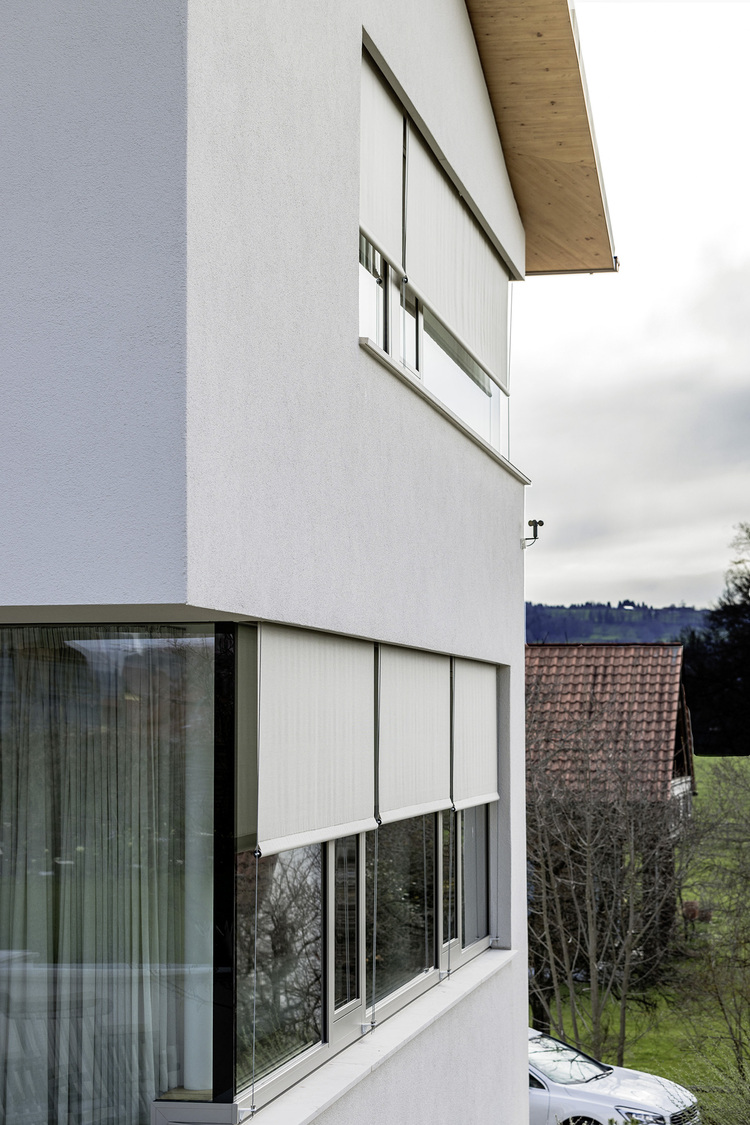 Der Jalousiekasten lässt sich individuell an die Gebäudearchitektur anpassen. Damit ist auch die Verschattung von Ganzglasecken möglich.