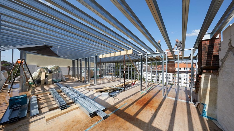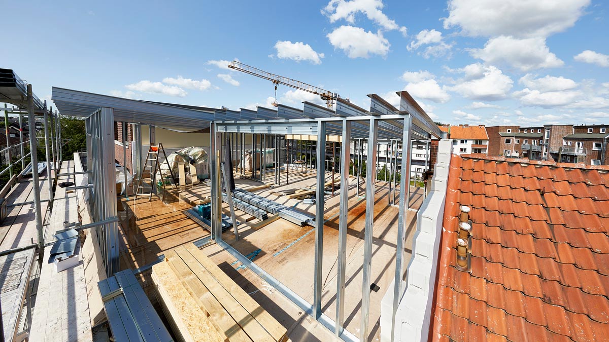 Knauf Leichtbauprofile für Aufstockung eines Mehrfamilienhauses