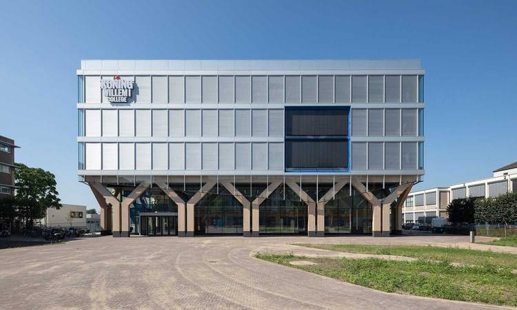 Das Koning Willem I College in 's-Hertogenbosch zählt zu den größten Berufsschulkomplexen in der niederländischen Provinz Brabant. Ein großzügig verglaster Erweiterungsbau bietet auf einer Fläche von 5.000 Quadratmetern flexibel nutzbare Unterrichtsräume für den hier ansässigen Fachbereich Technik.
