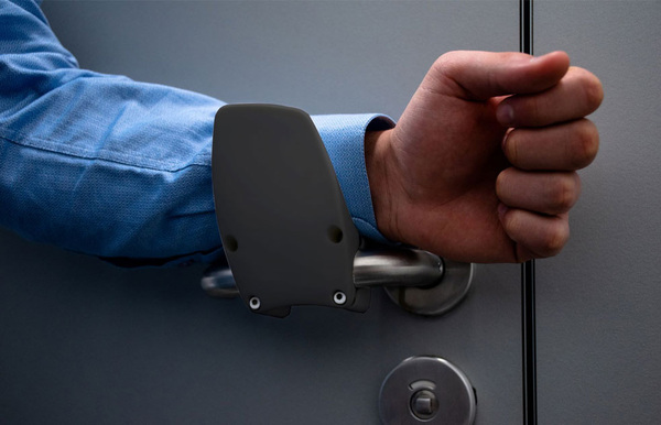 Mitunter müssen Hemdsärmel, Taschentücher und Desinfektionsspray als Hilfsmittel herhalten, bevor eine Türklinke überhaupt erst gedrückt wird. Ein Handfrei-Türöffner schafft nun Abhilfe und ermöglicht das hygienische Türöffnen.
