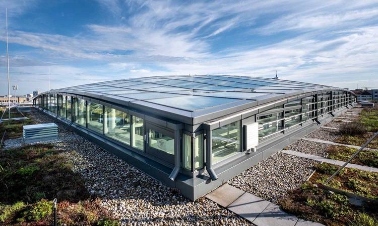 „Wir haben viel getan, um natürliche Ressourcen wie Grundwasser, Sonneneinstrahlung und Tageslicht zu nutzen. Wir haben ein Gebäude geschaffen, das für die Menschen gebaut ist, das die Umwelt schont und dem Bauherrn eine langfristige Wertschöpfung ermöglicht“, erklärt Franz Meier, projektleitender Architekt von DMP Architekten München. Aufgrund dieses einzigartigen Baukonzeptes erhielt das Newton das Platin-Zertifikat für Nachhaltigkeit der Deutschen Gesellschaft für nachhaltiges Bauen (DGNB) und sicherte sich einen Spitzenplatz unter den Münchner Bürohausprojekten. Auch das Lamilux PR60 Glasdach zahlt auf dieses Konto ein.