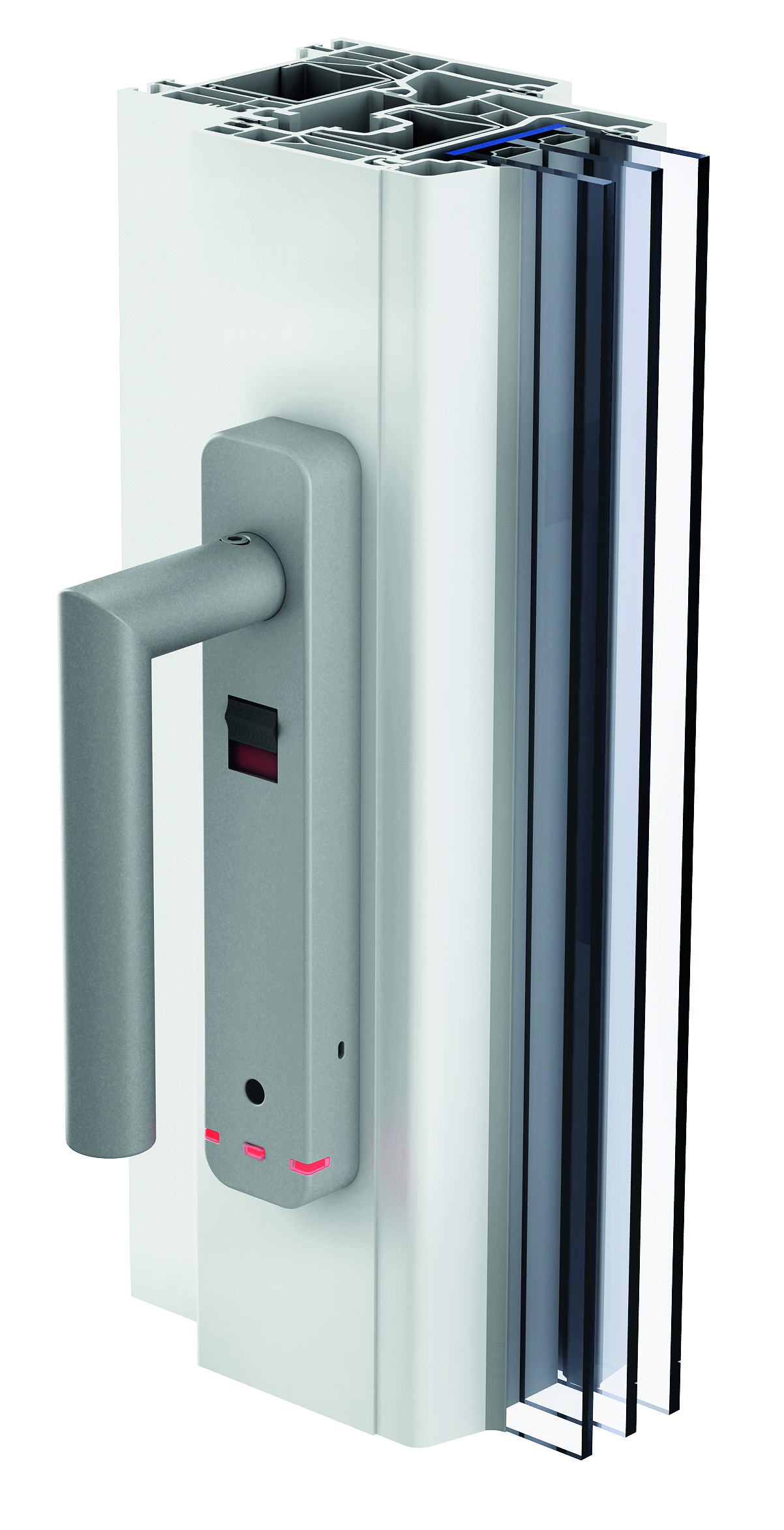 Mehrere integrierte Sensoren überwachen den Neigungswinkel wie auch auffällige Erschütterungen am Glas, Beschlag oder Profil. Bei Werten, die auf einen Einbruch hindeuten, ertönt ein Alarmsignal – auch bei gekippten Fenstern. Eine integrierte mechanische Sperre übernimmt die Funktion von absperrbaren Griffen, ohne lästigen Schlüssel.