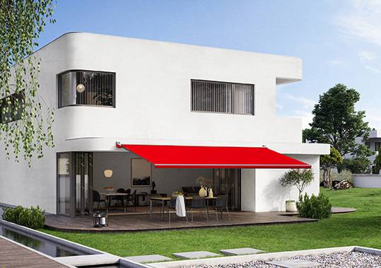 Die MX-3 tritt mit Maßen von maximal 6m Breite und 3m Ausfall an. Trotz einer kleinen Kassette hat die Markise damit einen großen Schattenwurf. Und das mit einem besonders stabilen Ausfallprofil und stabilen Seitenkappen. Die zwei Gelenkarme fahren das Tuch aus und über neue Einfahrgleiter im Kassettenkorpus leichtgängig wieder ein. Von dieser neuen Komponente profitiert auch die Statik des Gehäusedeckels. Stabilität garantierten zudem die mit der „Bionic-Sehne“ als Zugelement versehenen Gelenkarme. Das Modell ist mit einem Kurbelantrieb erhältlich oder mit io-Funkmotor sowie optional auch mit RTS-Funkmotor. Sämtliche elektrische Kabel sowohl für den Motorbetrieb als auch für die Lichtsysteme und weitere Zusatzfunktionen verschwinden im Kassettengehäuse.