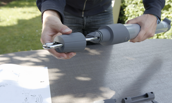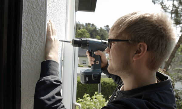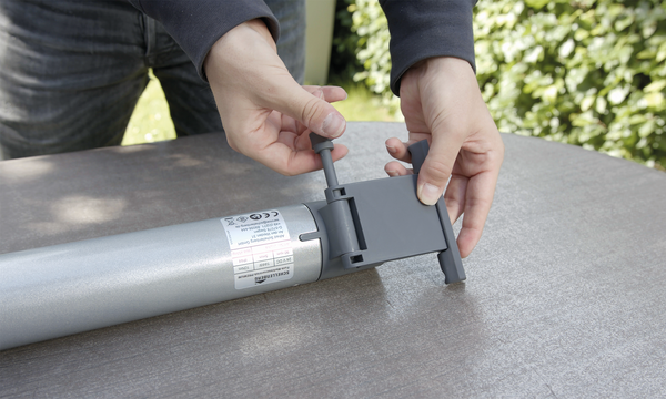 Letztere kann einfach in die Kurbel-Getriebeöse der Markise eingehängt werden. Anschließend wird der Antrieb an der Fassade fixiert und an das im Lieferumfang enthaltene Solarpanel angeschlossen. Die hierüber gewonnene Energie aus Sonnenkraft unterstützt den im Markisenantrieb integrierten Akku (NiMH) beim kabellosen Betrieb. Vor dem Erstbetrieb und wenn die Energie ausgeht, wird der Akku mit dem ebenfalls im Lieferumfang enthaltenen Netzteil aufgeladen.
