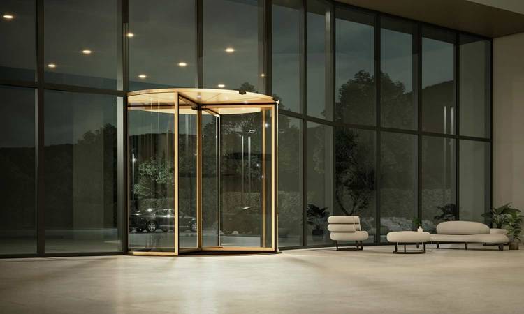 Karusselltüren bieten einige Vorteile im Vergleich zu Schiebetüren: Sie sorgen nicht nur für eine geringere Belastung durch Schmutz und Lärm, sondern tragen auch zur Energieeinsparung bei. Durch den Einsatz der Türsysteme werden Zuglufterscheinungen nahezu eliminiert. Geze bietet mit der Revo Prime eine neue designorientierte Karusselltürlösung mit einer Kranzhöhe von nur 75 mm an.