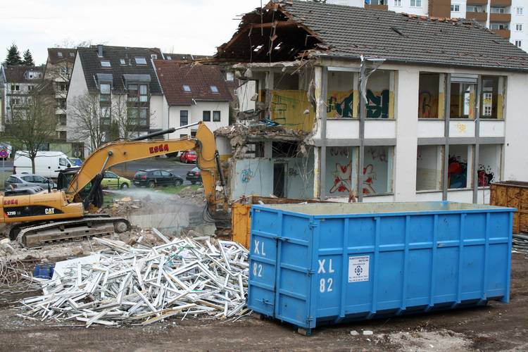 Rückbau einer Schule in Siegburg: Die Fensterrahmen sind bereit für das Recycling.