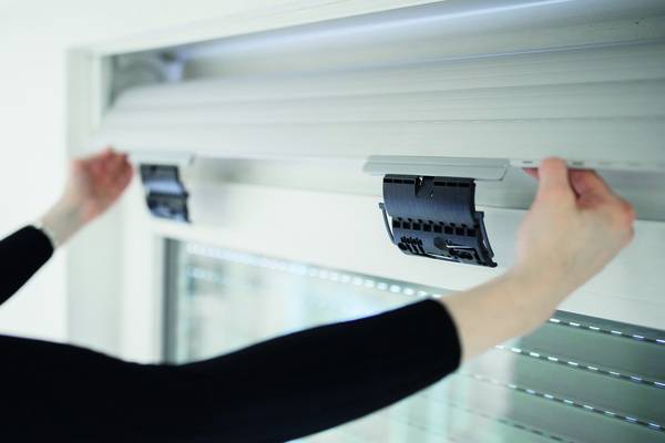 Die einfache Installation erfolgt über die praktische Klippbefestigung an der Vierkantlochung der Rollladenwelle mit zwei speziellen Metallspangen. Dabei übernimmt die Schutzlösung von Schellenberg gleich zwei Funktionen: als Hochschiebesicherung und als Rollladenaufhängung.