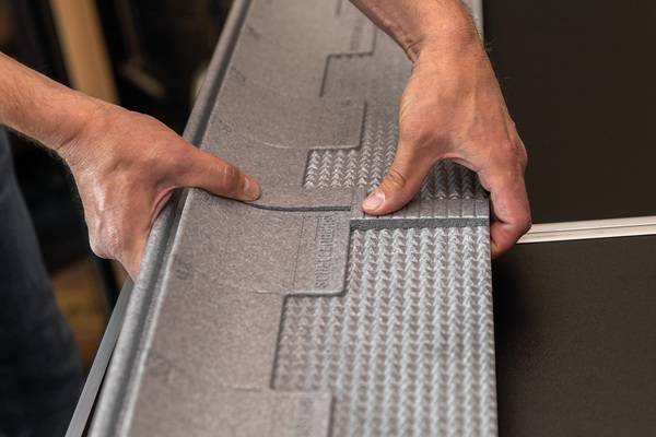 Schellenberg Professional stellt mit seinem Set aus Dämmmatte und Dämmkeil eine praktische Lösung zur Verfügung. Die beiden Teile lassen sich dank Nut und Feder einfach miteinander verbinden und schnell montieren. Dabei ist das Dämm-Set ideal für den Zugang über die Revisionsöffnung vorne oder unten geeignet. Der Keil hilft hier durch seine spezielle Form beim Platz sparen. Auch das Kürzen oder Erweitern je nach Einbausituation geht leicht von der Hand. Das System kann gesteckt und mit den angebrachten Schneidhilfen sehr einfach angepasst werden.