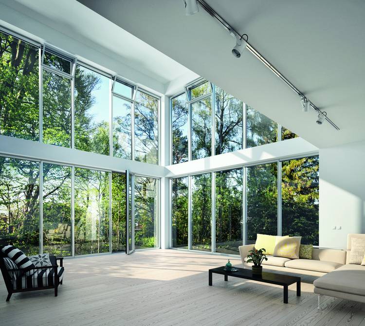 Die Pfosten-Riegel-Konstruktion in 60 mm Ansichtsbreite ist mit zwei Bautiefen und einem individuell nutzbaren Baukörperanschlusssystem einsetzbar für Fensterbänder in klassischer und geschosshoher Anwendung bis hin zu Lochfenstern inklusive Absturzsicherung nach DIN 18008 (TRAV).
