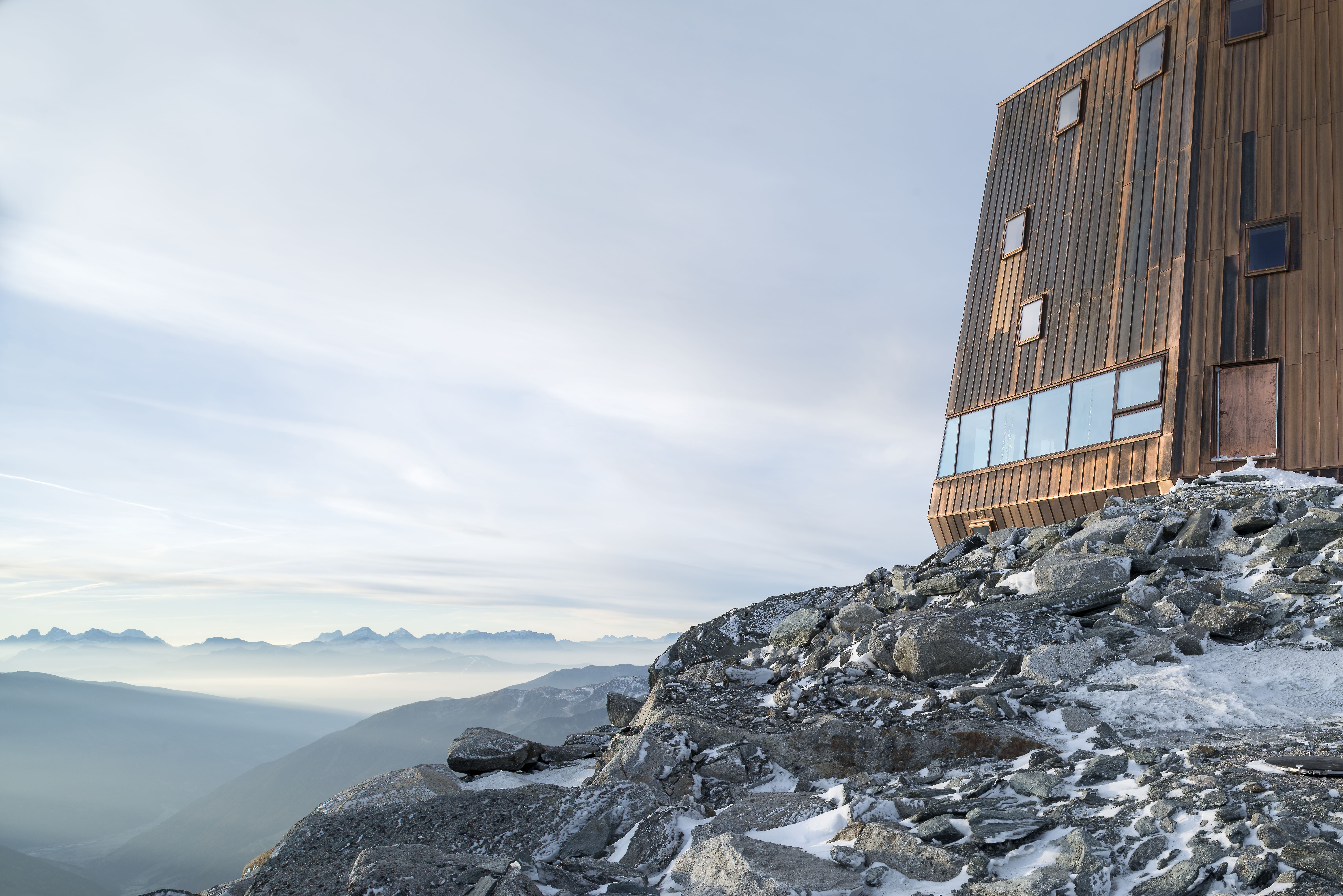 Dass ihre regulären Fenster auch den alpinen Anforderungen auf über 3.000 Meter Höhe genügen würden, hatten Velux Spezialisten den Architekten bereits in einem frühen Projektstadium zugesagt und versichert, dass weder Unterwasserfenster noch andere extreme Lösungen gebraucht würden. Bis auf den durch den Luftdruckunterschied zwischen Flachland und Hochgebirge erforderlichen Gasdruckausgleich und eine geringfügige Änderung der Dichtungen gab es keine weiteren Anpassungen an den Velux Fenstern.