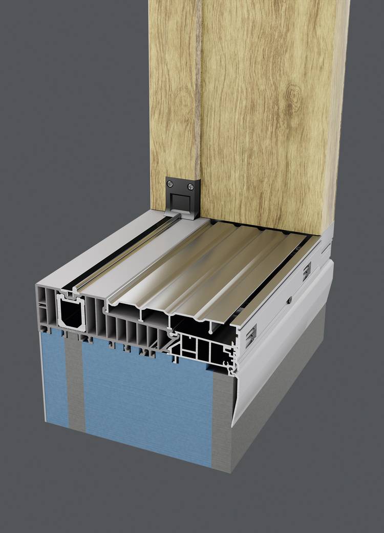 Geeignet für Elemente aus Holz, Holz-Aluminium oder Kunststoff unterstreicht die neue, nach den anspruchsvollen Regularien der MO-01/1 vom ift auf Dichtheit im Bauanschluss geprüfte Schwelle mit ihrer gefälligen Optik und dem flachen Design die Eleganz und Wertigkeit des Portal HS.