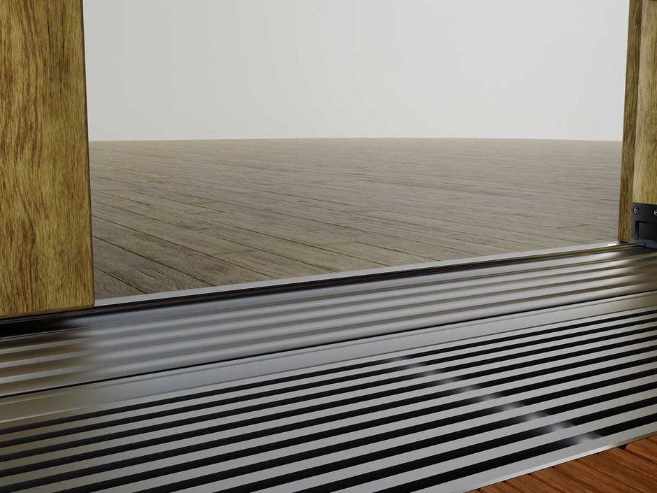 Dabei bietet die niveaugleiche 5-mm-Bodenschwelle Endanwendern generationsübergreifenden Komfort und Lebensqualität, indem sie einen bequemen Durchgang ganz ohne Schrägen schafft und Raumkomfort universell erlebbar macht. Raumkomfort gewährleistet die neue Schwelle darüber hinaus durch ihre Schlagregendichtheit: Dank der Entwässerung über zwei Ebenen werden die gleichen Schlagregendichtheitsergebnisse erreicht wie bei den herkömmlichen Bodenschwellen mit Wasserablaufschräge.