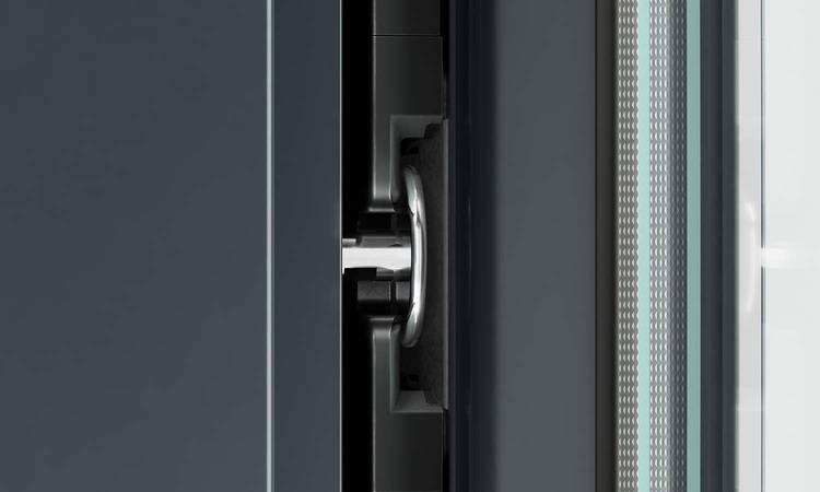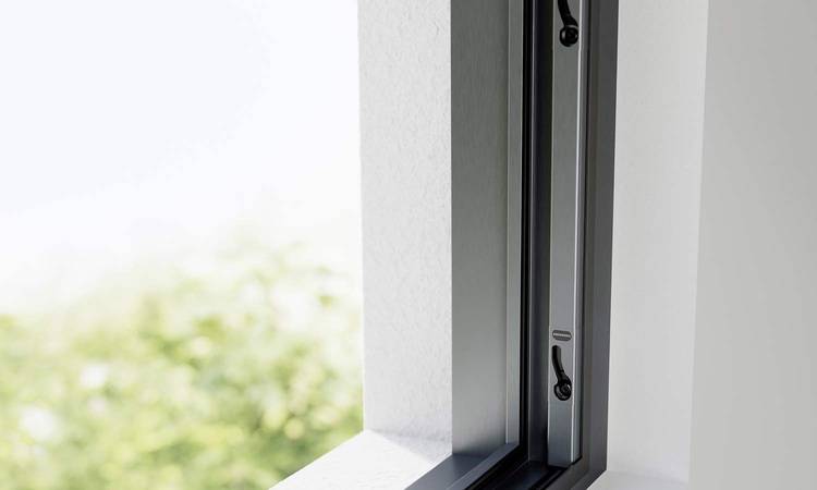 Für Zeit- und Kosteneinsparungen in der Fertigung sorgen z. B. der umlaufende Flügel-Zentralbeschlag Titan, der sich mithilfe von wenigen Zusatzbauteilen anschlagen und einstellen lässt, und nur eine Multifunktionsschiene für den Blendrahmen benötigt.