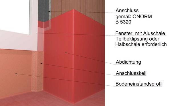 Die „Richtlinie Bauwerksabdichtung – Anschluss an bodentiefe Fenster und Türen“ (Herausgeber: Plattform Fenster Österreich, Wien) liegt als Entwurf in den Teilen 1 Planung und 2 Ausführung vor und soll helfen, die Schnittstellen zwischen Fenster- und Türelementen mit z. B. Bodenschwelle, Bodeneinstandsprofil oder Sohlbankprofil und die Bauwerks-, Dach- oder Terrassenabdichtung aufeinander abzustimmen.