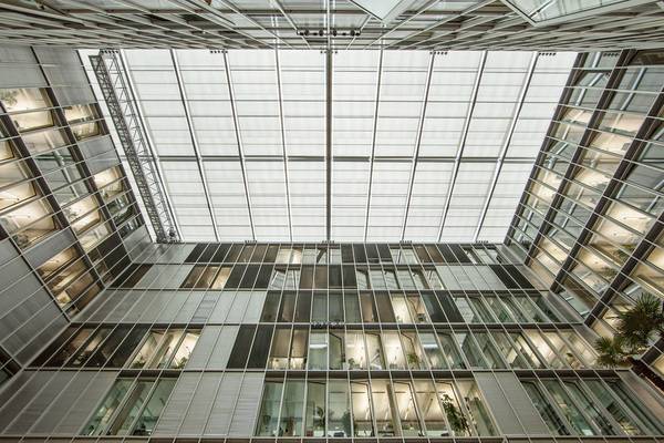 Starre, außenliegende Sonnenschutzsysteme sind natürlich davon ausgenommen, wenn sie durch ihre Form und Anordnung so gestaltet sind, dass jederzeit ein ausreichender Sonnen- und Blendschutz gewährleistet werden kann. Blendschutz stellt da aufgrund der vielen Bildschirmarbeitsplätze natürlich ganz besonders hohe Anforderungen an den Planer. Gerade die Frage nach der Transparenz der Behänge kann dabei nicht eingehend genug im Vorfeld diskutiert werden. Fragen nach der Himmelsrichtung und dem damit verbundenen unterschiedlichen Lichteintrag, Schattenwürfe oder Reflektionen durch spiegelnde Fassaden benachbarter Gebäude spielen auch eine entscheidende Rolle, wenn es darum geht, ausreichende Kontrastwerte bei Computerarbeitsplätzen zu erreichen, um die gesetzlichen Anforderungen der Berufsgenossenschaften zu erfüllen.