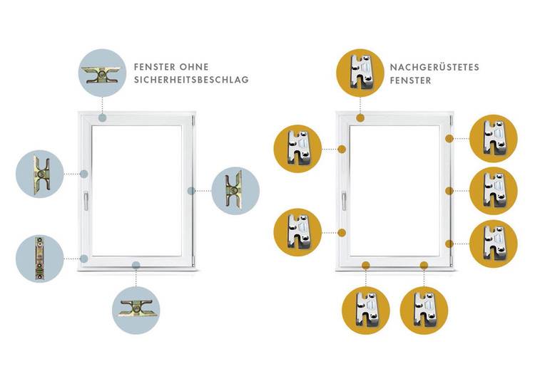 Es müssen nicht immer neue Fenster sein: Sind die vorhandenen Elemente neuwertig bzw. gut erhalten, reicht für einen höheren Einbruchschutz oft der nachträgliche Einbau von Sicherheitsbeschlägen. Wichtig ist, dass diese über eine Prüfung nach DIN 18104/2 für einbruchhemmende Nachrüstprodukte verfügen.