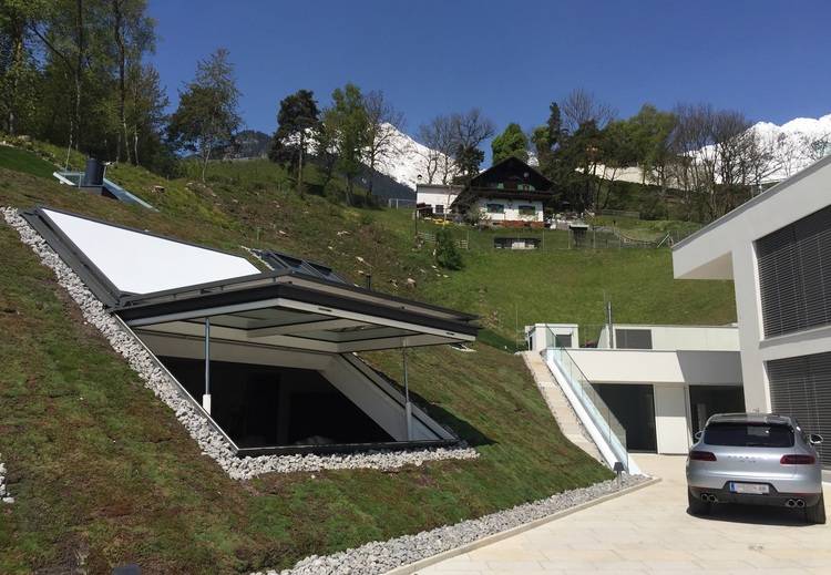 Hacksteiner-Metall in Faistenau bei Salzburg den Jumbo-Dachklappflügel der Axaar Dachfensterserie speziell für den Einbau in geneigten Dachflächen an. Die Größe des Fensters ist enorm: Das Element lässt sich bis 6,5m Breite und 5m Höhe fertigen. Ein Flügel kommt damit auf über 30m2 Fläche und bietet so ein Höchstmaß an Transparenz, Luft und Licht.