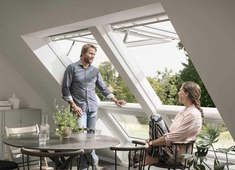Highlight unter den vorgestellten Neuheiten beim Velux Messeauftritt in München ist das elektrisch betriebene Klapp-Schwing-Fenster, mit dem Architekten eine neue Komfortlösung zur Verfügung steht, die die Dachfensterplanung erleichtert.