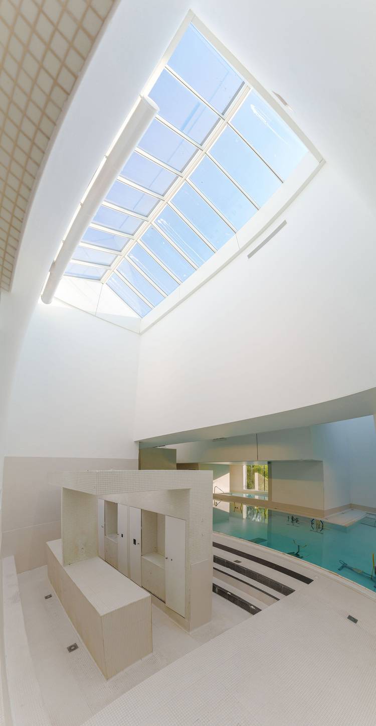 Beinahe 400 Velux Modular Skylights kamen schließlich in den Ausführungen als Lichtband und Sattel-Lichtband zur Belichtung des Badezentrums zum Einsatz und ersetzten die bisherigen Systeme. Zudem lieferte Velux Commercial spezielle Dampfsperre-Anschlussstreifen, ein dazugehöriges Dampfsperre-Klebeband sowie eigens für Schwimmbäder konstruierte First-Eindeckungen. Die neuen Oberlichter sorgen für wertvolles natürliches Licht und bieten gleichzeitig Langlebigkeit, perfekte Abdichtung sowie eine verbesserte Akustik und lassen die Badegäste so in eine andere Welt eintauchen. Das Zenitlicht, das auf die Becken fällt, wird von den strahlend weißen Wänden reflektiert und sorgt für eine einzigartige Atmosphäre.