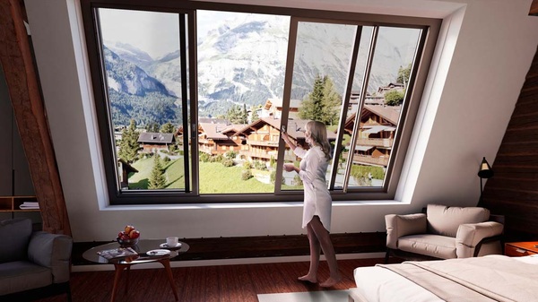 Großformatige Fensteranlagen lassen einen Raum am Tag mit Sonnenlicht durchfluten und eröffnen in den Abendstunden einen Blick in den Sternenhimmel. Vor allem im Dachgeschoss könnten Dachfenster durch die hohe Lage und schräge Ausrichtung dem Zimmer direkt unter dem oberen Hausabschluss eine besondere Atmosphäre verleihen.