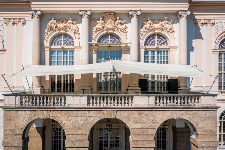 Aktuelles Projekt: ein SunSquare-Sonnensegel im XXLFormat. Unter Berücksichtigung aller Auflagen des Denkmal-Schutzes konnte hier eine perfekte zeitgemäße Sonnenschutz-Lösung für die 1723 erbaute Terrasse geplant und errichtet werden. Diese sehr spezielle SunSquare Sonnensegel Anlage wurde von SunSquare geplant, und durch den langjährigen SunSquare Vertriebspartner Star-Roll errichtet. Aufgrund der sehr großen Segelfläche von ca. 80 m² kam der äußerst reißfeste und zugleich ultraleichte Dickson-Stoff SWK TOP zum Einsatz.