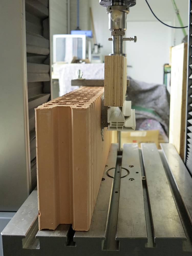 Als Untersuchungsmethode wurde ein Scherversuch gewählt, da dieser am besten die Lastübertragung bei Windlast in der Leibung oder durch das Eigengewicht im Falle einer Vorwandmontage abbildet. Im Zuge des Scherversuches wurden die Kraft und der Weg aufgezeichnet und nach Versuchsende die Scherfestigkeit und in letzter Konsequenz ein Bemessungswert berechnet. Entscheidend waren nicht nur die Absolutwerte der Systeme, sondern vielmehr deren Veränderung bei unterschiedlichen – in den Labors simulierten – Baustellenbedingungen.