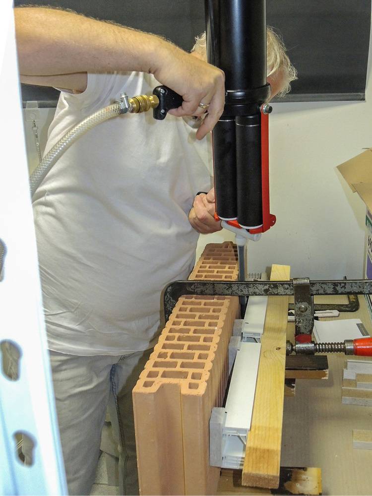 Eine weitere wichtige Erkenntnis aus den Versuchen war, dass für einen praxistauglichen Einsatz und aus Gründen der Qualitätssicherung die Applikationstechnik / Verarbeitungstechnik weiter vereinfacht und verbessert werden muss. So konnte z. B. trotz vollständiger Fugenfüllung (100 % Füllgrad) nur eine Haftfläche vom Klebstoff zum Fensterprofil-Rahmen-Rücken von durchschnittlich 70 Prozent, im Extremfall sogar nur 30 Prozent, erzielt werden.