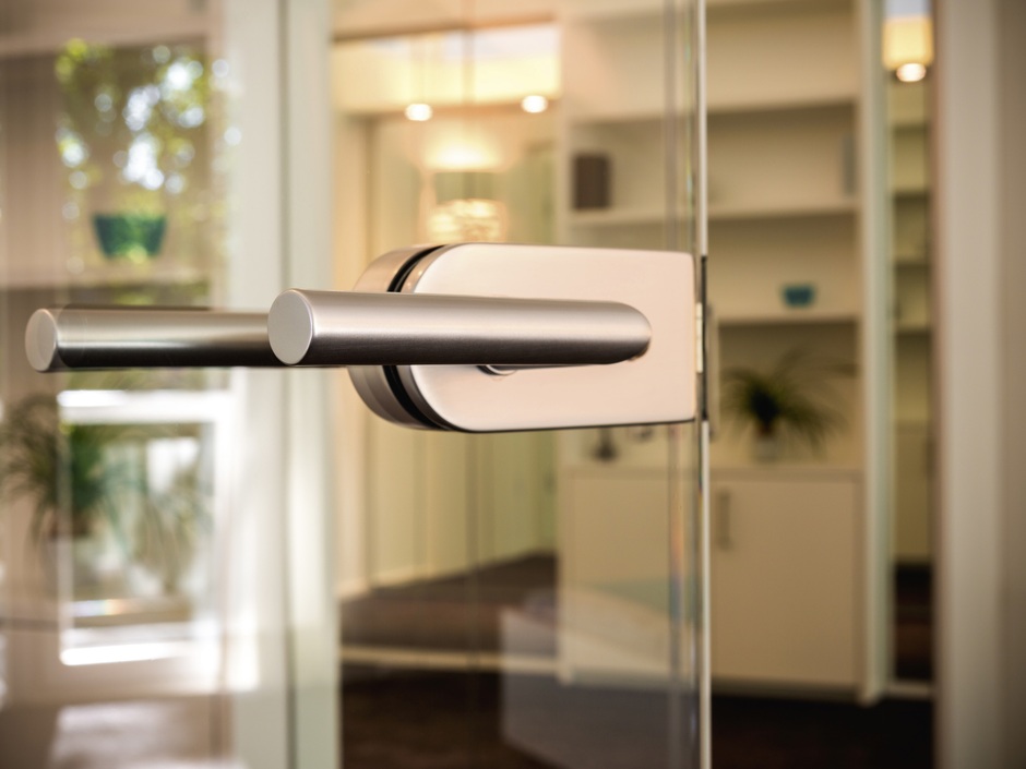 Mit einem völlig neuen Beschläge-Programm speziell für Glastüren reagiert Würth auf die Anforderungen des Handwerks und der Endkunden im Hinblick auf Qualität, Funktionalität und Design. Dies zeigt sich beispielsweise bei der verwendeten Flüsterfalle: Sie verbindet eine klassische Metallfalle mit einer speziellen Kunststoffeinlage und sorgt somit stets für ein leises Schließen. Und die jeweils dreiteilig gestalteten Türbänder gewährleisten einen geraden und sicheren Halt des Türblatts – egal, ob in Verbindung mit einem Türrahmen aus Holz oder Metall.