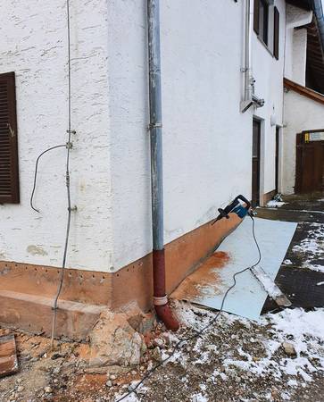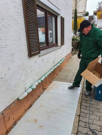 Um das alte Bauernhaus sanieren zu können, schaffen da Horizontalsperren Abhilfe, die verhindern, dass kapillare Feuchtigkeit im Mauerwerk von unten nach oben steigt. Schuster hat dazu mit Veinal VSS 1-90 ein markenrechtlich geschütztes Verfahren entwickelt, das inzwischen schon viele historische Gebäude wie dieses alte Bauernhaus rettete. Denn es ermöglicht, nachträglich eine Horizontalsperre einzuziehen – und das ohne Vorbehandlung und mit relativ einfachen Mitteln.
