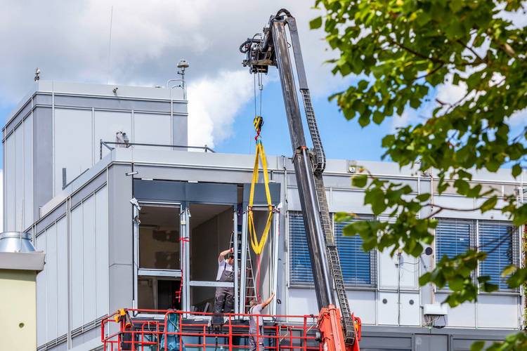 Eine integrierte dezentrale Lüftungstechnikeinheit regelt den Luftwechsel und die Wärmerückgewinnung. Durch eine gezielte Verschaltung mit der Luftklappe wird nur ein Ventilator benötigt, wodurch sich der Stromverbrauch minimiert. Das Lüftungsgerät wechselt dabei zyklisch zwischen Zu- und Abluftbetrieb und führt damit quasi eine Atmung aus. Darüber hinaus sorgen Vakuumdämmelemente für den Wärmeschutz. „Die neue EE-Modulfassade bietet einen exakt aufeinander abgestimmten Wärme- und Sonnenschutz bei gleichzeitig geringem Energiebedarf und hohem Nutzungskomfort“, betont Michael Eberl, Wissenschaftler am Fraunhofer IBP und Kollege von Jan Kaiser im Projekt.