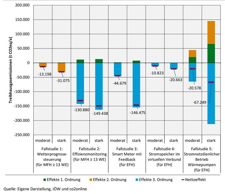 Die Forschenden vom Institut für ökologische Wirtschaftsforschung (IÖW) und co2online haben eine übertragbare Methode zur Umweltbewertung der Digitalisierung im Endkundenmarkt des Energiebereichs entwickelt und in fünf ausgewählten Fallstudien zu Wärme und Strom in Wohngebäuden und Haushalten angewandt.