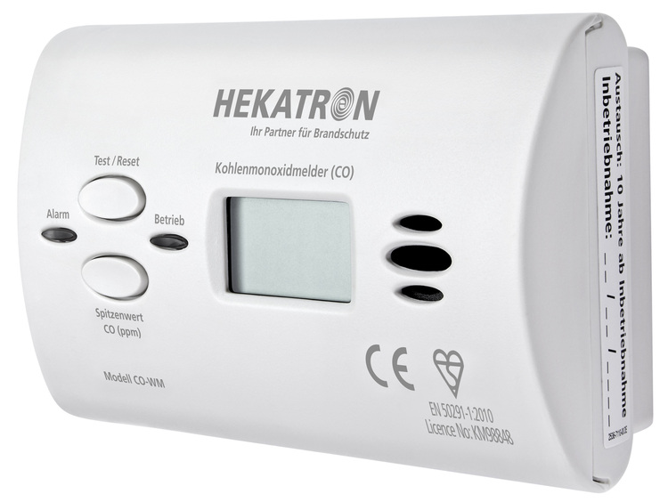 Ein Spitzenwertspeicher stellt sicher, dass ein Kohlenmonoxid-Austritt auch nach längerer Abwesenheit angezeigt wird. Die Installation eines CO-Warnmelders empfiehlt Hekatron Brandschutz bei Feuerstätten in geschlossenen Räumen (Gasthermen, Öfen, Kamine etc.).