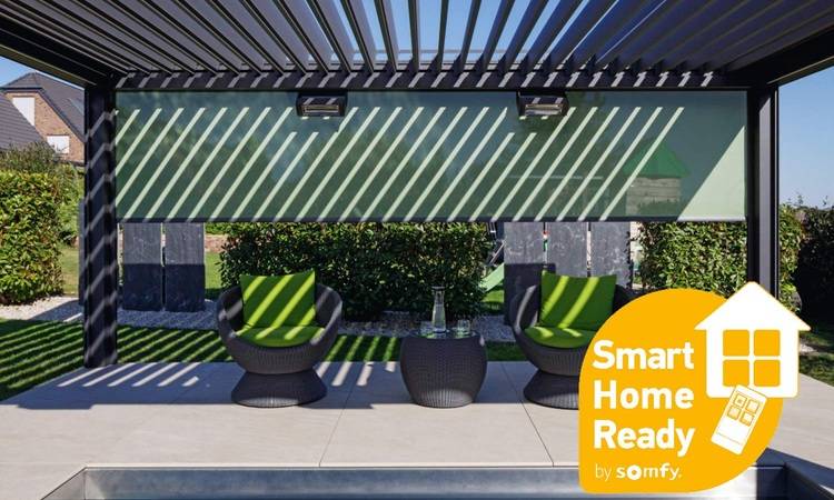 Alle elektrischen Komponenten für das Lamellendach Artares können nun auch mit der Smart-Home-kompatiblen Technik von Somfy bedient werden: der Lamellenmotor, die hochwertigen Farb-LED-Bänder und die LED-Bänder mit warmweißem Licht sowie die Vertikalbeschattungen und das Heizsystem Tempura. Somit bietet Weinor jetzt für jeden Schwerpunkt die passende Steuerung an: zum einen Smart Home Ready by Somfy, zum anderen Weinor BiConnect.