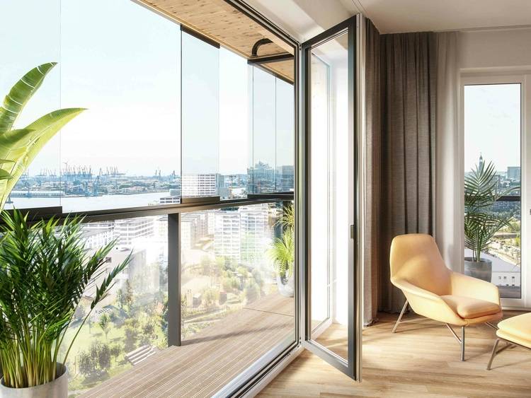 Die umlaufenden Loggien am Haus werden mit Lumon Verglasungen ausgestattet. Das soll nicht nur zur Energieeffizienz des Gebäudes beitragen, sondern auch den Komfort der Bewohner erhöhen und tolle Ausblicke auf den Hafen, die HafenCity oder die Innenstadt ermöglichen. Die Fertigstellung des Projekts soll im ersten Quartal 2024 erfolgen.