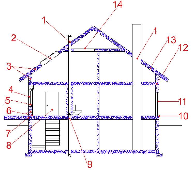 Dies betrifft als Öffnung ins Freie beispielsweise die Küchenlüftung oder den offenen Kamin. Beide dieser genannten potenziellen Luftbrücken sind zu schließen. Hingegen werden sämtliche Innentüren, die zur beheizten Zone des Hauses gehören, geöffnet und eventuell mit Keilen gegen unbeabsichtigtes Zuschlagen gesichert.