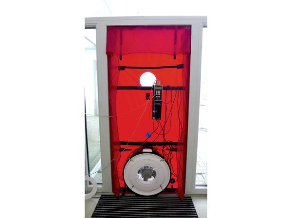 Man ermittelt diesen Wert mithilfe eines Ventilators, den man in eine Gebäudeöffnung einsetzt. Dieses Gebläse wird festgezurrt in ein Fenster oder eine Tür gesetzt und mittels reißfesten Gewebetuchs gegen den Baukörper abgedichtet.