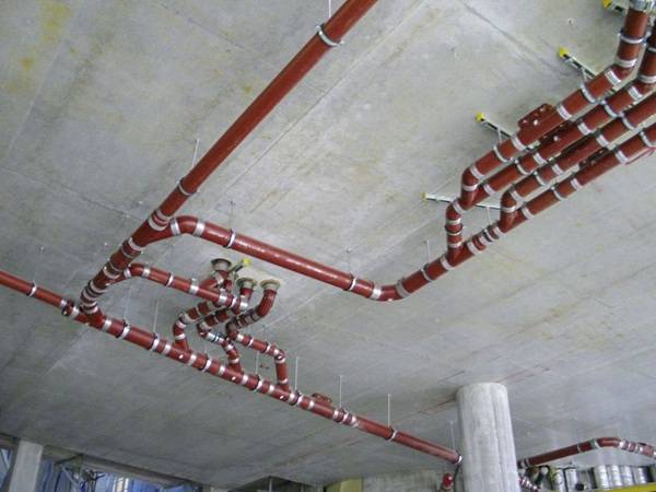 Das Brandschutzkonzept ist die Basis für eine brandschutztechnisch einwandfreie Ausführung des Hochhauses einschließlich der Rettungswege und der Leitungsanlagen. Zur Minimierung der Brandlasten in Hochhäusern sind grundsätzlich Leitungen aus nichtbrennbaren Werkstoffen der Brandklasse A empfehlenswert. Nichtbrennbare Leitungen, wie beispielsweise gusseiserne Abflussrohrsysteme, führen zu keiner Brandlast oder Brandweiterleitung und dürfen in Flucht- und Rettungswegen frei verlegt werden.