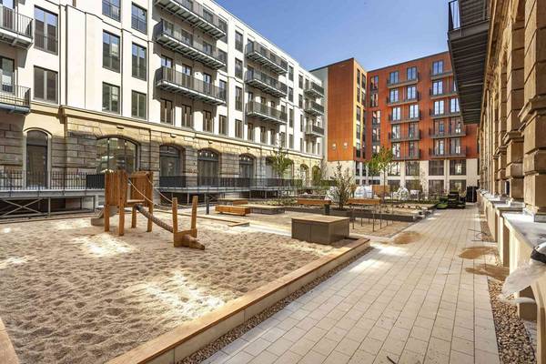 Auf dem Gelände der ehemaligen Oberpostdirektion in Dresden ist mit der Residenz am Postplatz ein Wohnensemble entstanden, das Reste des alten Gebäudes mit flankierenden Neubauten kombiniert.