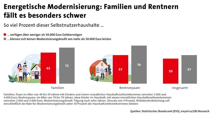 In der öffentlichen Diskussion wird immer wieder auf zwei Gruppen hingewiesen, die von einer aufwendigen Sanierung finanziell überfordert sein könnten: junge Familien und Rentner. Deshalb werden diese in der Studie noch einmal exemplarisch betrachtet – und die These bestätigt sich: