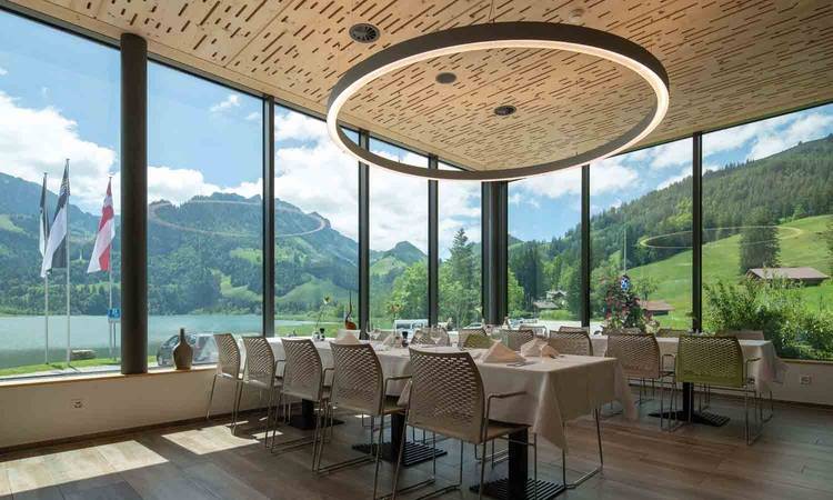 Die Gäste genießen die Aussicht ohne Komforteinbußen und haben inzwischen den Panoramasaal als ihren Lieblingsplatz im Hotel auserkoren. Die Tönung wird als sehr angenehm wahrgenommen, auch weil der leichte Blauton dem Himmel schmeichelt. „Ich sag immer, das ist wie eine Sonnenbrille, die automatisch dunkler wird. So funktioniert das ganze Gebäude, das ist für uns eine große Erleichterung. Wir sind sehr happy damit", freut sich Roodbeen und lacht.