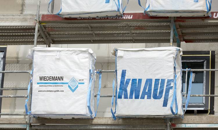 Ein enormer Vorteil auch beim Großprojekt in der Rheinallee II. Für die insgesamt 10.000 Quadratmeter Fassadenfläche kamen ca. 2.200 IMBAGs, gefüllt mit Knauf Warm-Wand EPS-Platten zum Einsatz. Für Oberbauleiter Ralf Krämer von der Firma Wiedemann aus Wiesbaden, die bereits einige Großbaustellen mit dem System abgewickelt hat, haben die IMBAGs noch einen entscheidenden Vorteil: „Es braucht keine Lagerflächen im Baustellenbereich für die Dämmung, wo es oft eng ist“.