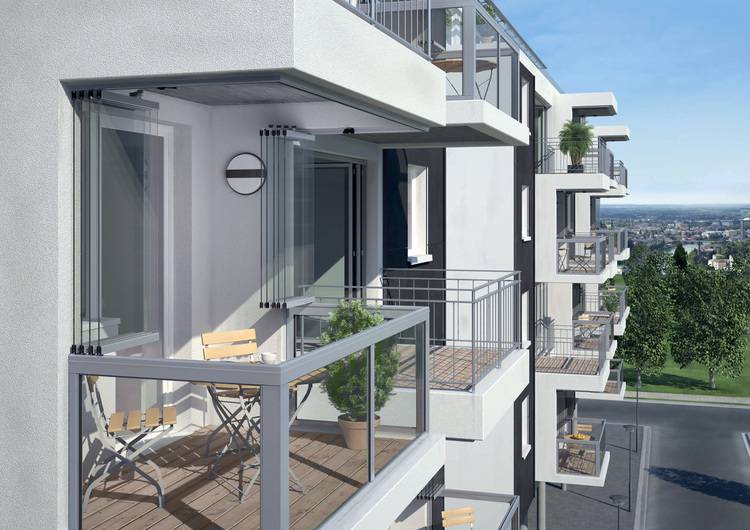Balkone mit zusätzlicher Verglasung bieten eine bewohnerfreundliche Option für Wohnungen in Städten. Im Sommer wie im Winter dämpfen Verglasungen, die auf die Balkonbrüstung montiert werden, laute Geräusche von draußen. Schon das Schiebe-System SF 20 gewährt einen einfachen Schutz vor Lärm und schlechtem Wetter. Diese Variante ist auch für kleine Anbauten geeignet, da keine Elemente wie Türflügel oder Parkvorrichtungen in den Raum hineinragen und so Platz wegnehmen.